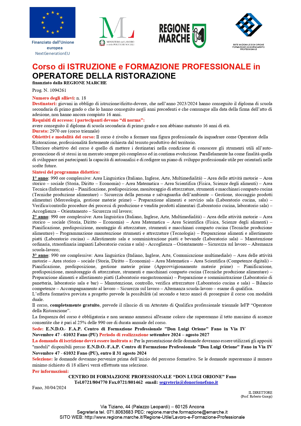 Bandi Anno Scolastico 2024/2025 Operatore della Ristorazione Bando Operatore della Ristorazione 2024/2025 Download Domanda Iscrizione Intervento Download