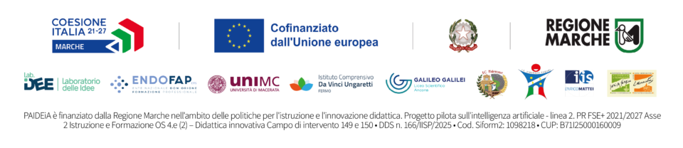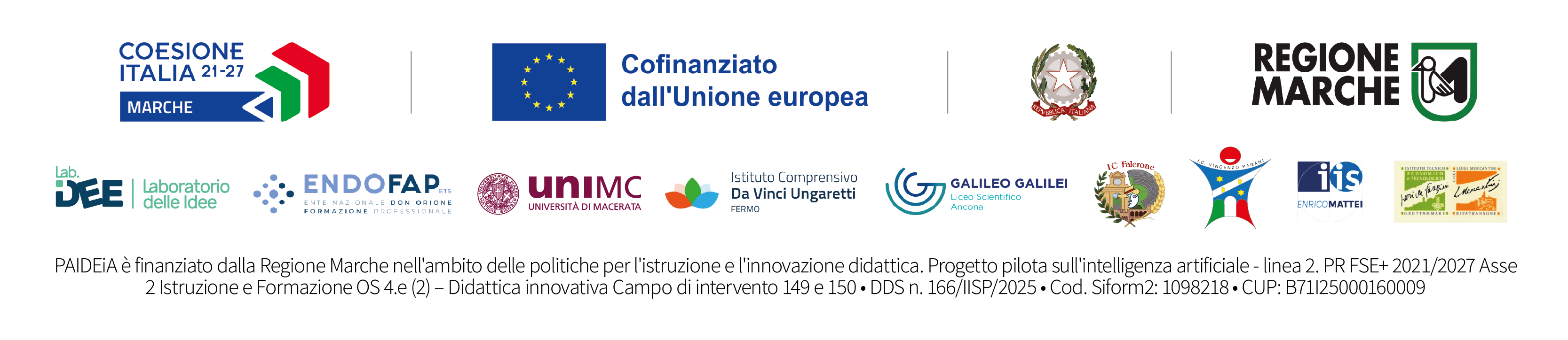 Il progetto si colloca nel quadro delle politiche regionali volte a sostenere il miglioramento della qualità dell’offerta formativa e a promuovere processi strutturati di innovazione didattica nelle scuole delle Marche. PAIDEIA è realizzato da un’Associazione Temporanea di Scopo composta da sette istituzioni scolastiche marchigiane, dall’Università degli Studi di Macerata e da Laboratorio delle Idee Srl in qualità di capofila, con il contributo di esperti qualificati nei settori dell’Intelligenza Artificiale, della pedagogia e dell’etica digitale.